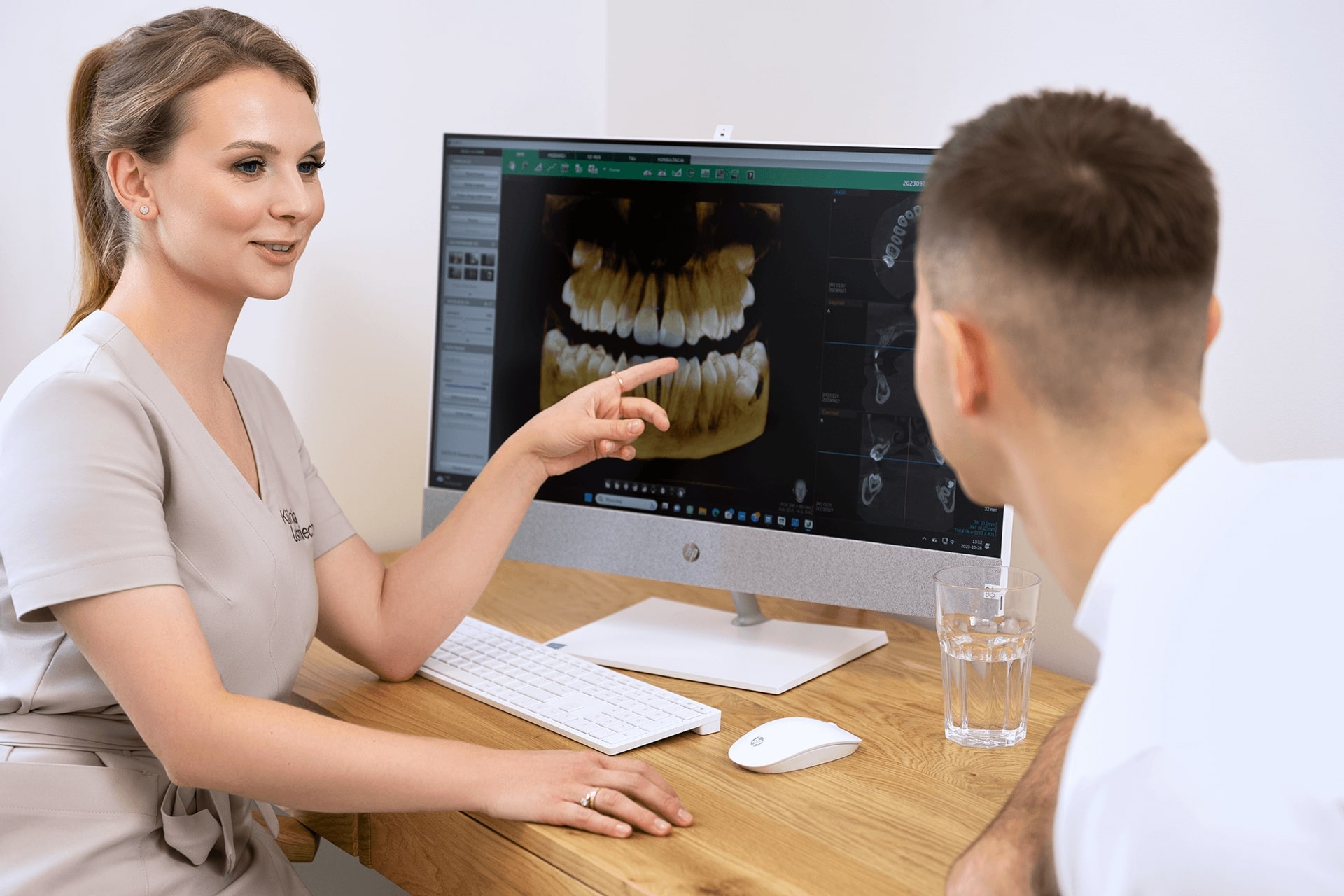 Zanim implant zęba zostanie wstawiony, lekarz implantolog dokładnie analizuje stan jamy ustnej Pacjenta. W Klinice Uśmiechu dokonujemy szczegółowej diagnostyki opartej o tomografię komputerową oraz cyfrowe skanowanie.